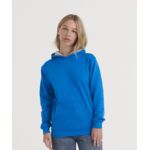 Twin needle stitching detailing, double fabric hood with contrast inner, contrast flat lace drawcords. Kangaroo pouch pocket with small opening for ear phone cord feed, hidden ear phone loops. Ribbed cuff and hem. Worldwide Responsible Apparel Production (WRAP) certified production.