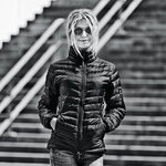 Luxurious looking light weight and fashionable down jacket with a pocket on the upper left arm, shiny lining, two inner pockets, covered side pockets which add to the functionality. Mobile phone pocket. Adjustable at lower waist. Wind and water repellent.
